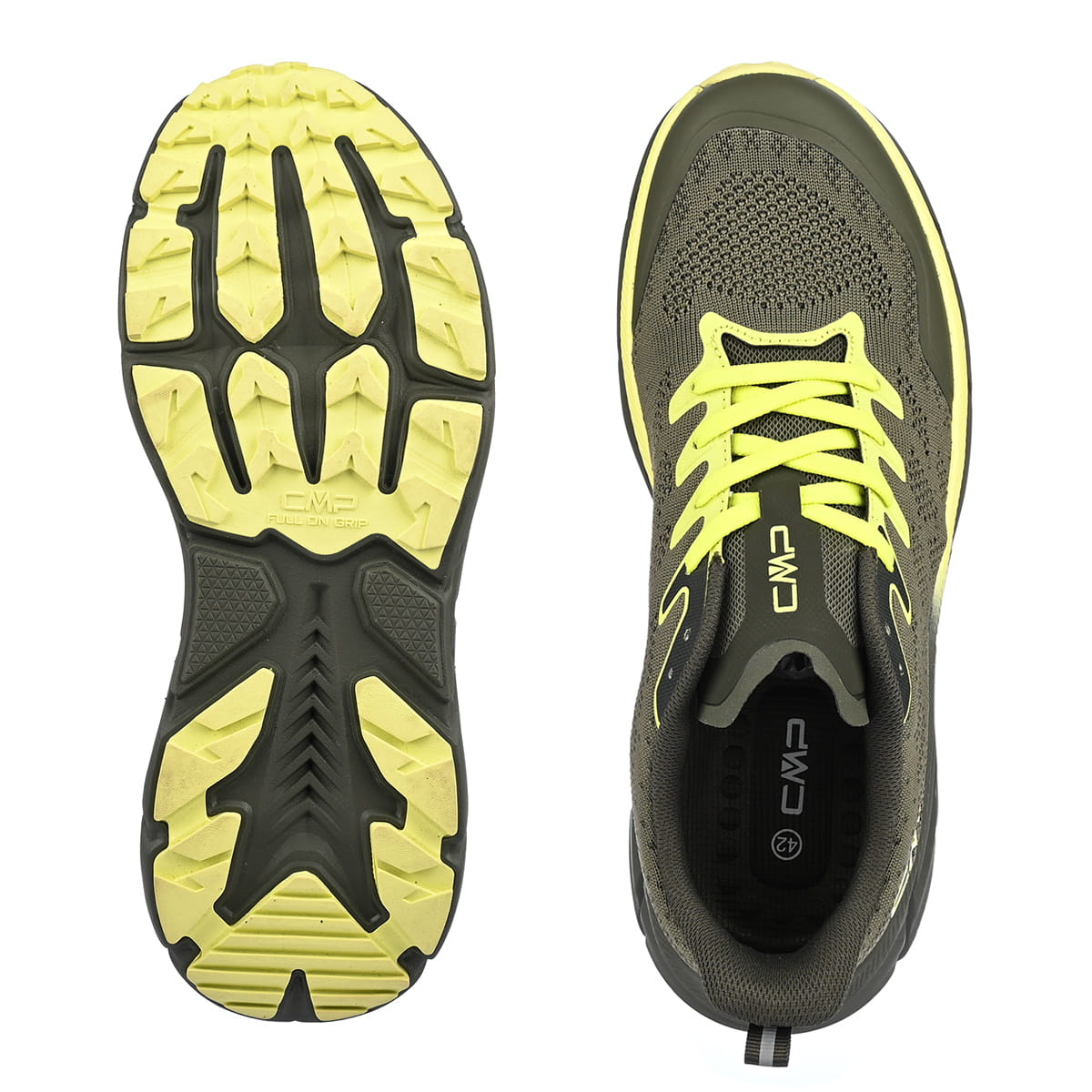 Podeszwa oparta o technologię CMP FULL On GRIP zapewni bezpieczeństwo i pewny krok użytkownika w niemal każdych warunkach pogodowych. Stosując agresywny wzór bieżnika, sprawdzi się zarówno na suchych, jak i mokrych nawierzchniach, przy zachowaniu niskiego poziomu ścieralności.